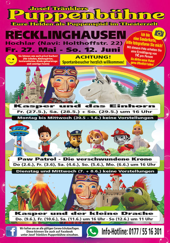 Josef Tränklers Puppenbühne präsentiert mit viel Liebe zum Detail traumhaftes Märchentheater und geht mit Kasper und seinen Freunden weiter auf Tournee. So können die kleinen und großen Besucher:innen mit ihnen gemeinsam wieder spannende Abente...