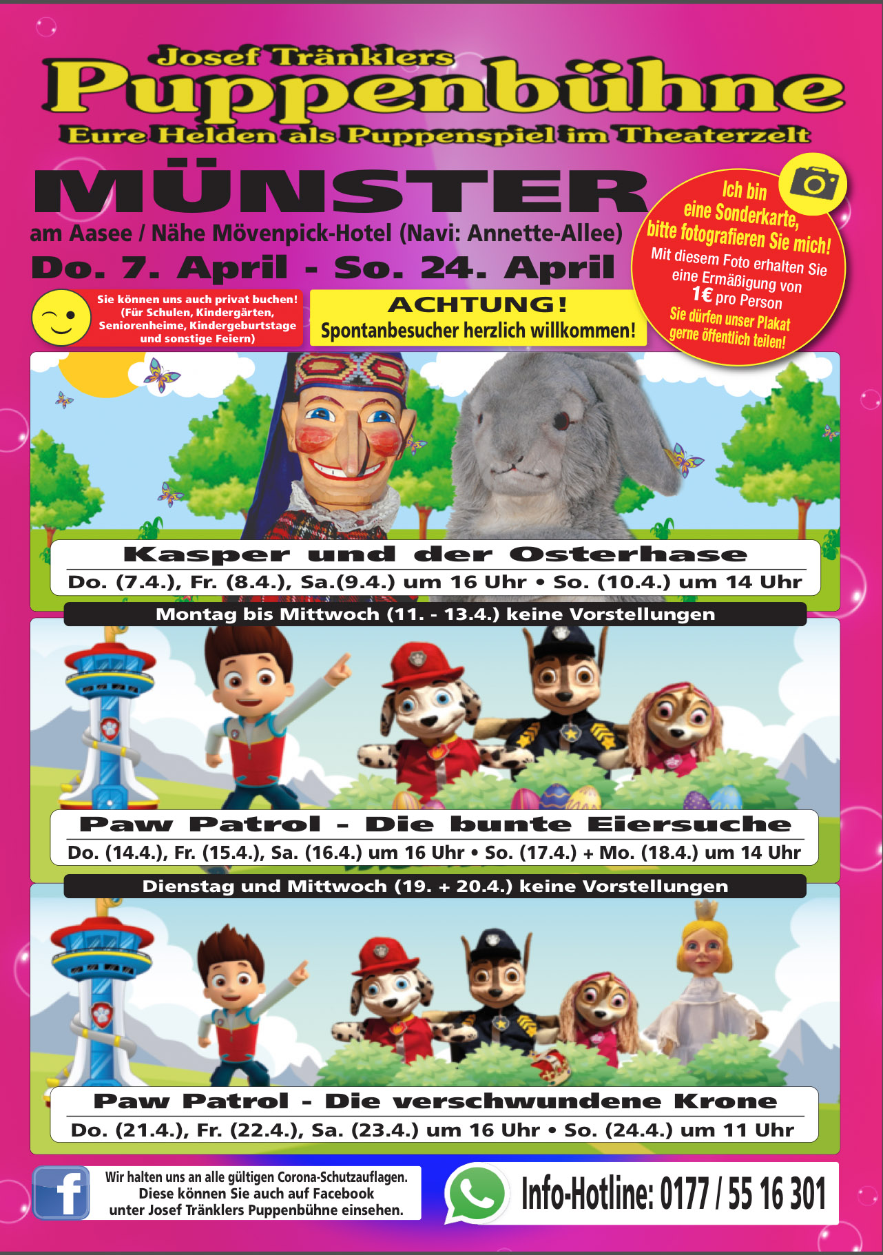 Ostern ist das Fest der Freude. Daher hat Kasper seine neuen Freunde mitgebracht. So können auch in diesem Jahr die großen und kleinen Besucher:innen mit Josef Tränklers Puppenbühne wieder spannende Abenteuer erleben. Die extra angefertigte Paw P...